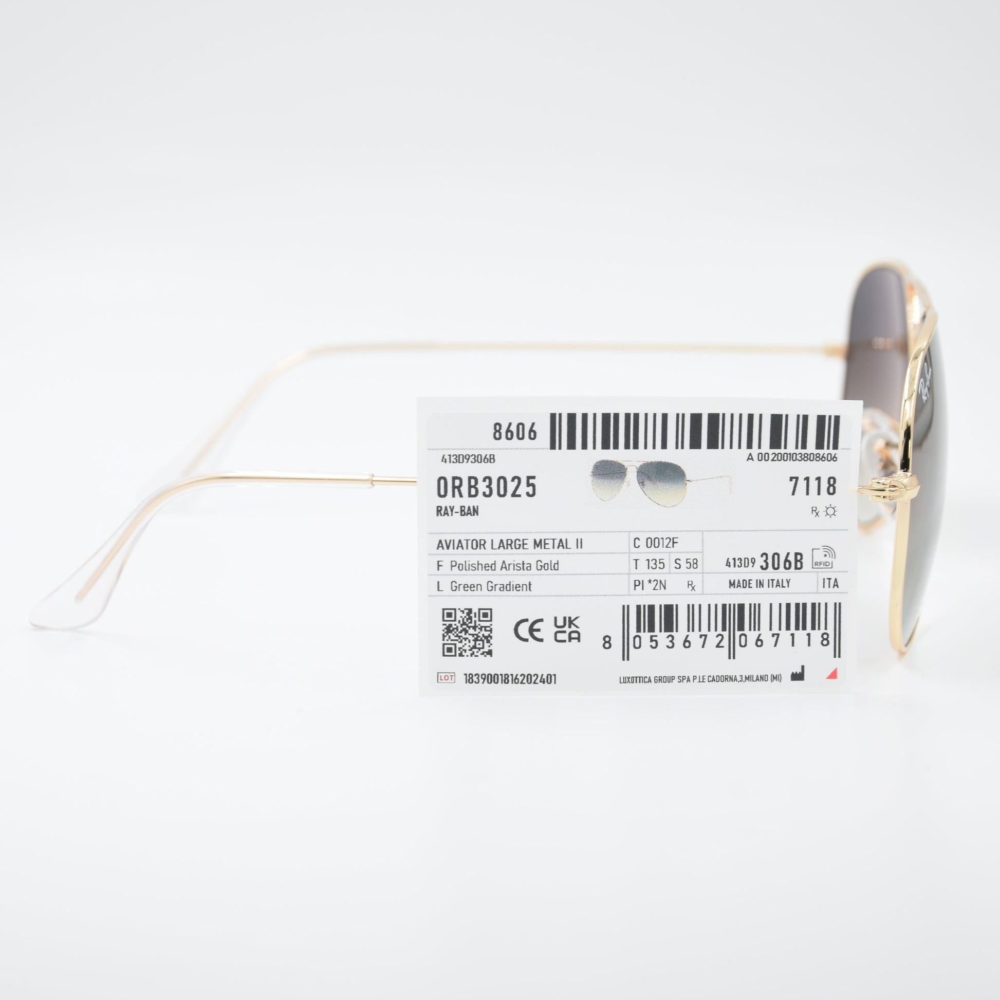 SOLAIRE :RAY-BAN RB3025 AVIATOR LARGE METAL C0012F