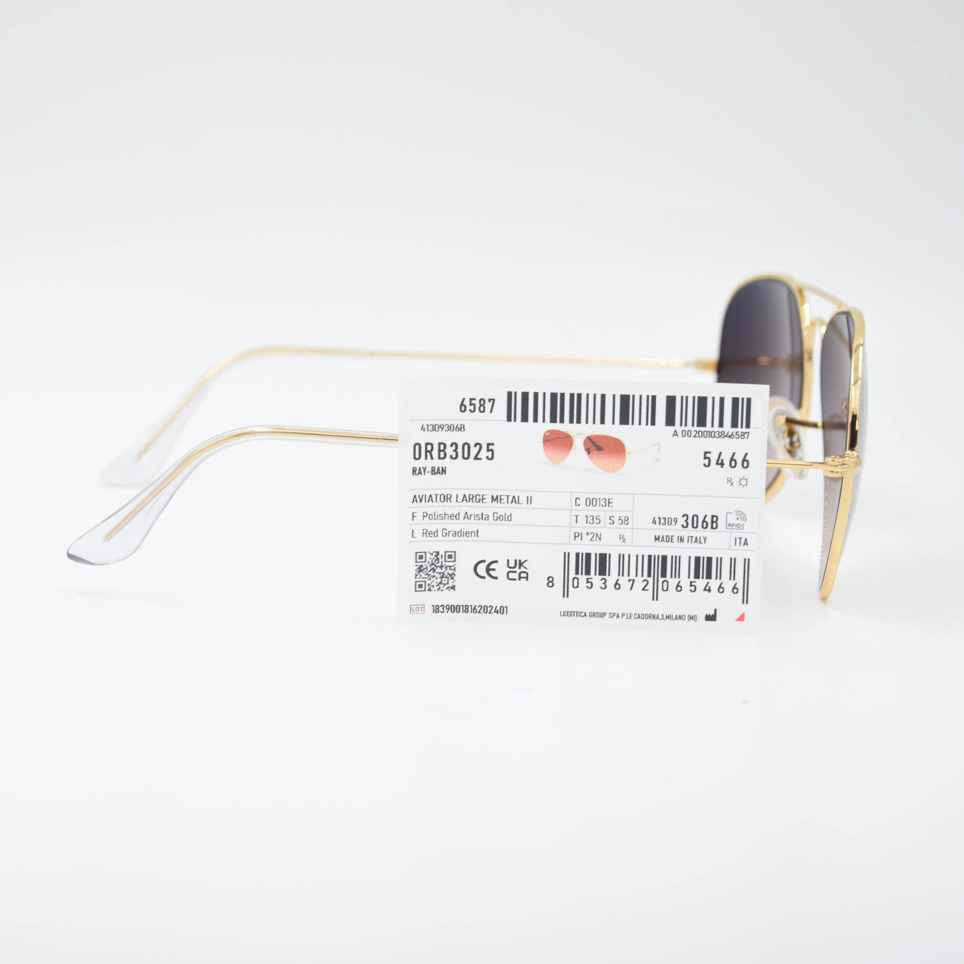 SOLAIRE :RAY-BAN RB3025 AVIATOR LARGE METAL C0013E